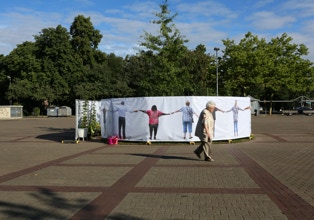 Hidden Paradise was a site specific installation built in the market place in Schonnebeck, Germany. It was one of the outcomes of a larger project called Home Sweet Home that involved working with local people from the town as well as two other Essen neighbourhoods, Stoppenberg and Katernberg. This temporary provocation was designed to ask local people to consider the shifting nature of their post industrial community in light of recent German immigration policy, as well as the importance of sustainable ecological policies in an increasingly globalised society.